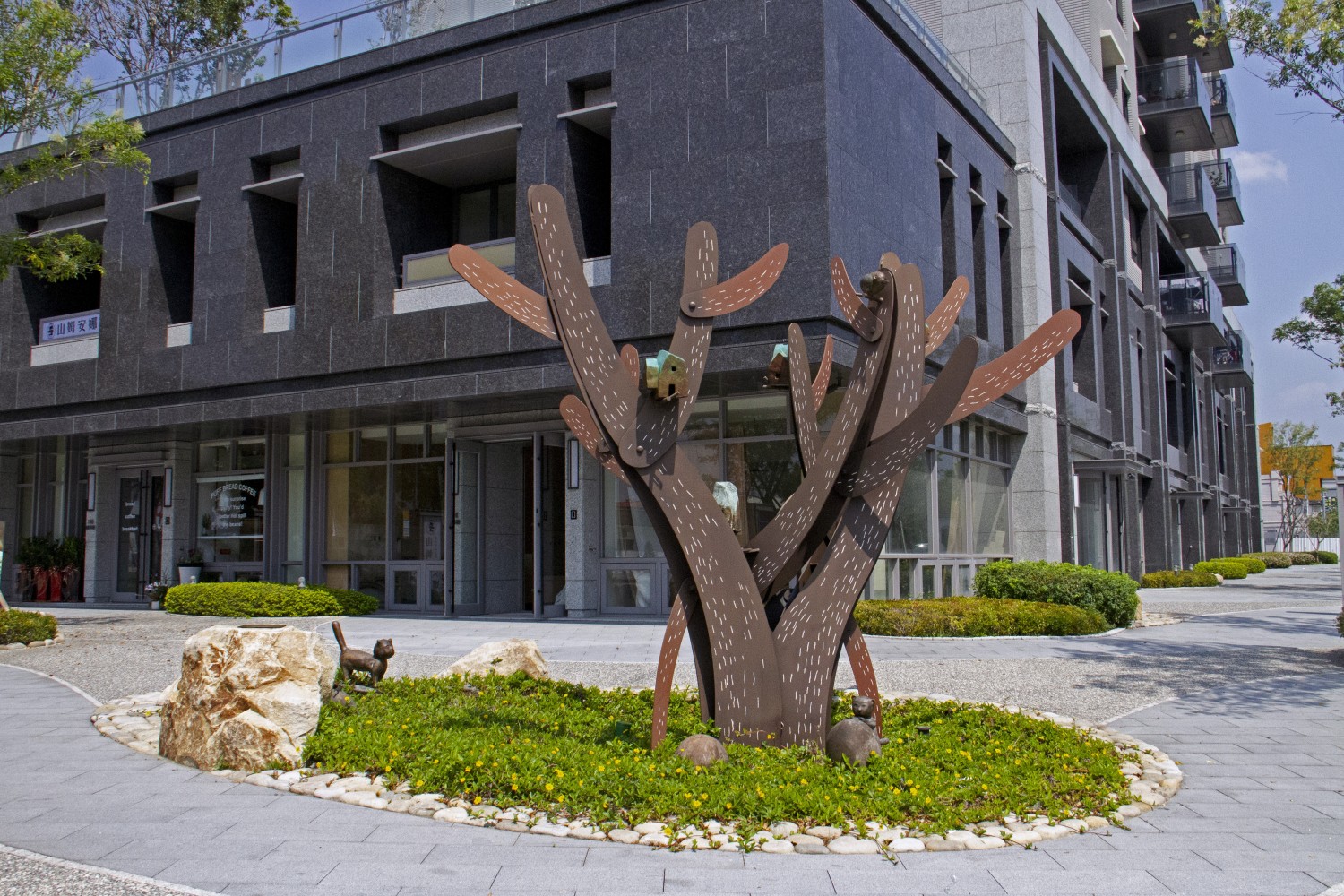 樹的力量與寬厚,貓的輕巧與陪伴, 如貓般的巧思,如樹般的建築峰嶺, 每一絲金屬紋路、每一片鑄鐵用料,
