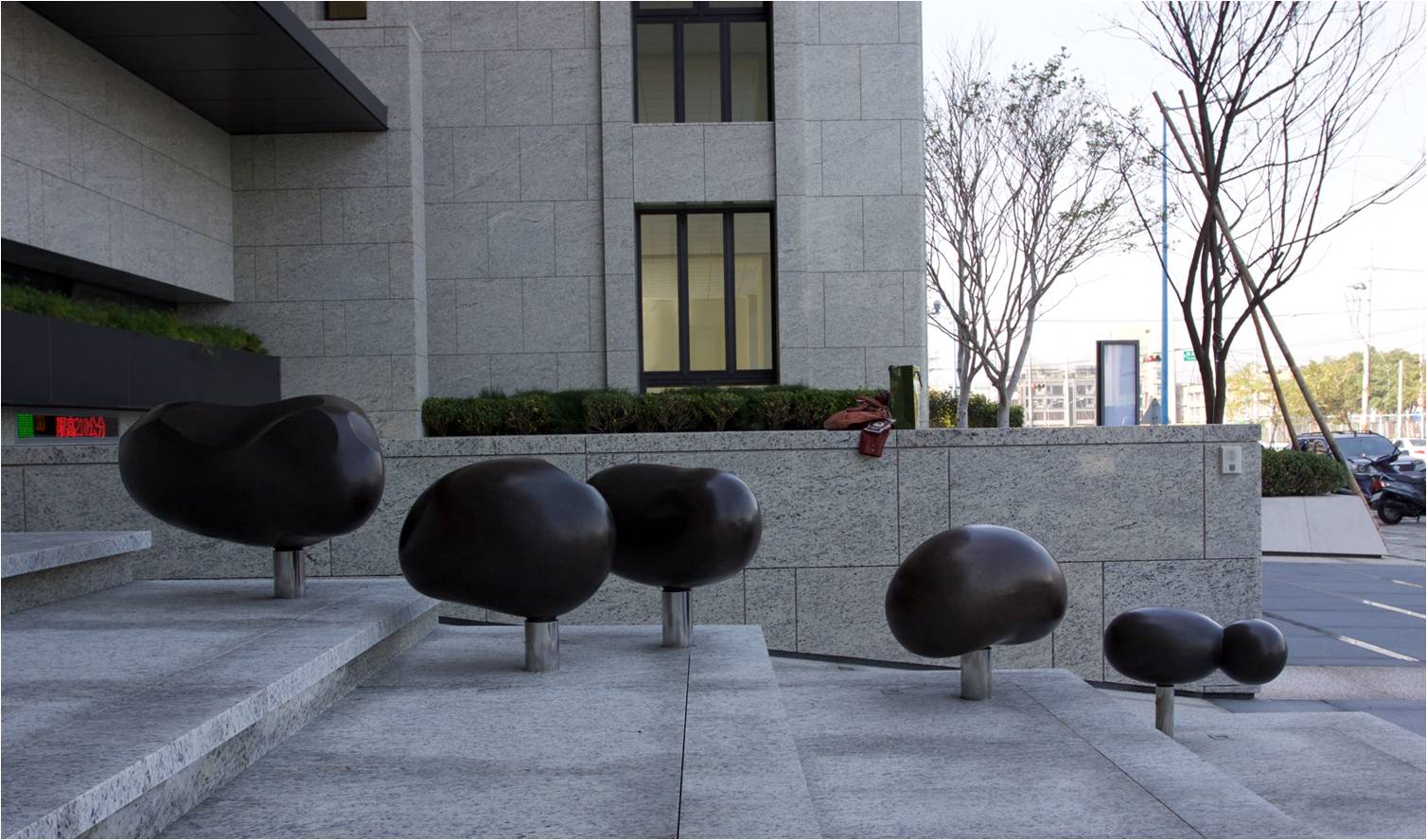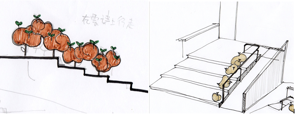 揉合青銅與不鏽鋼材質(zhì),讓雲(yún)團漫步在階梯上,