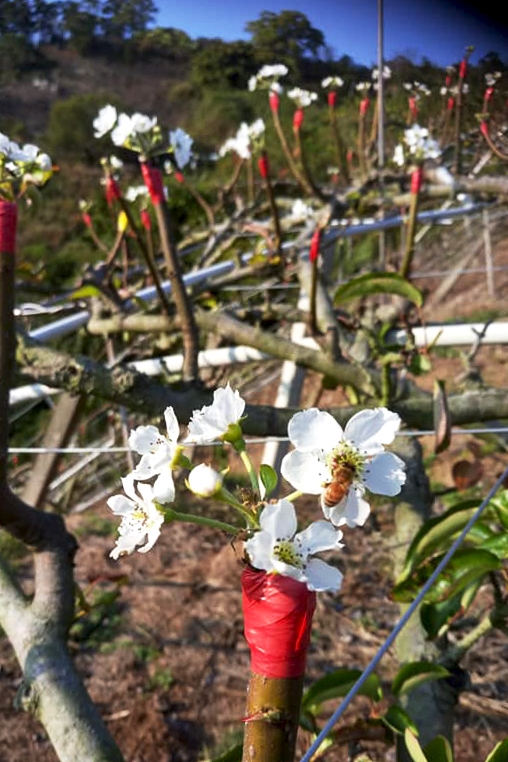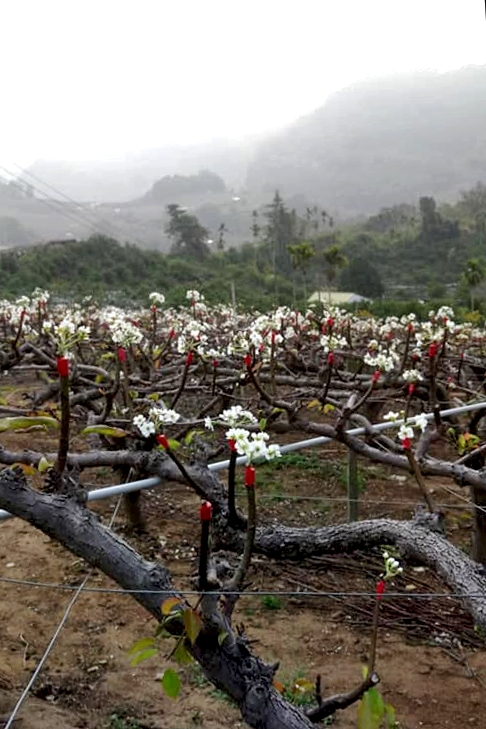 靜待著山丘開出一片片雪白梨花海,
