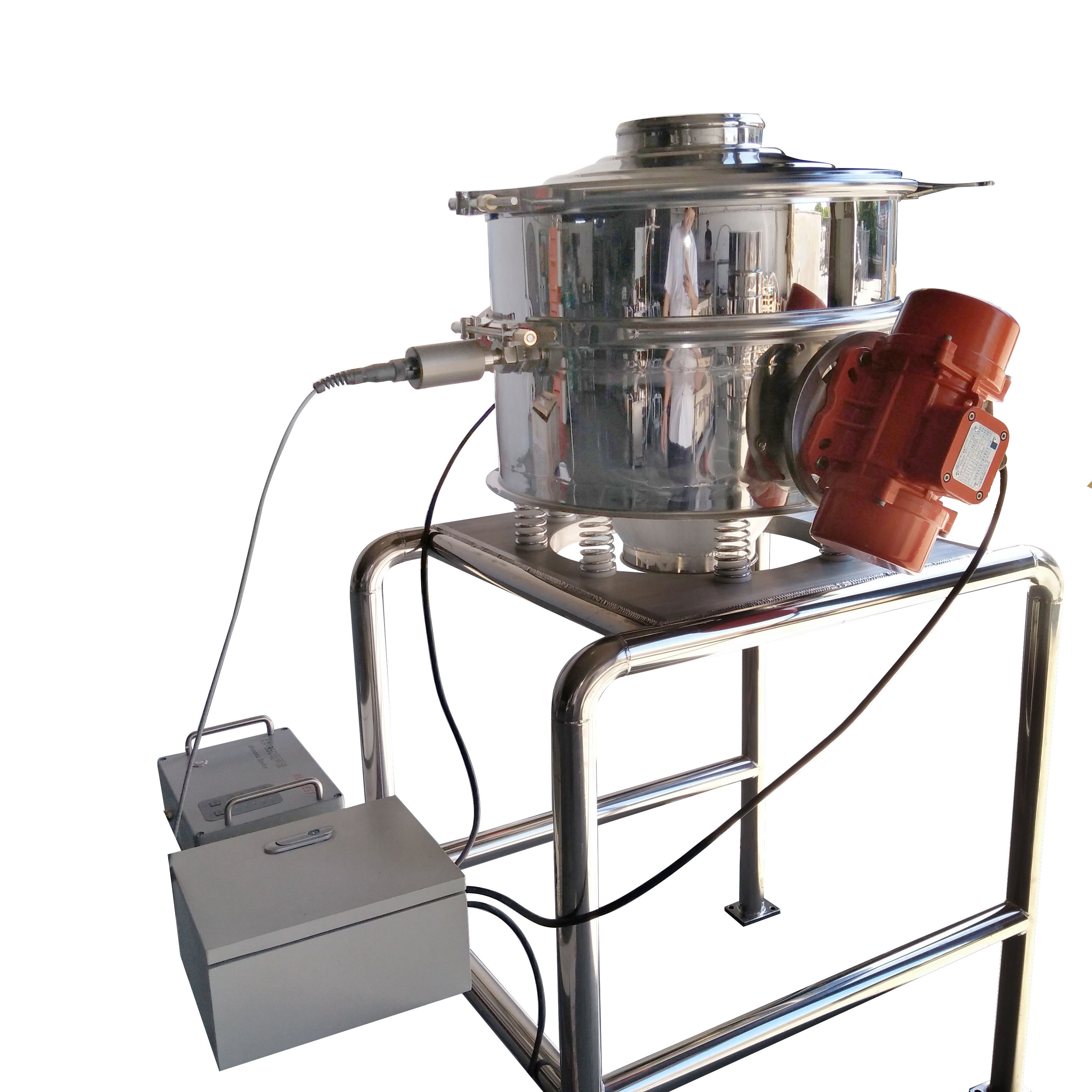 超聲波直排式振動(dòng)篩也叫超聲波直排振動(dòng)篩,分單振源和雙振源兩種,它是在圓振動(dòng)篩分機(jī)的功能基礎(chǔ)上改進(jìn)的,它是利用兩臺(tái)振動(dòng)電機(jī)作為振動(dòng)源,物料從中間進(jìn)入投料口,通過篩分,直接從底部中間出料口排出,適用干受安裝條件的限制或大批量連續(xù)作業(yè)。滿足各種不同比重物料的好的篩分效果。主要用于粉體生產(chǎn)線工藝流程中的粉體的除雜,篩松作用。疊加上超聲波振動(dòng),即可防止網(wǎng)孔堵塞,又可提高篩分產(chǎn)量。