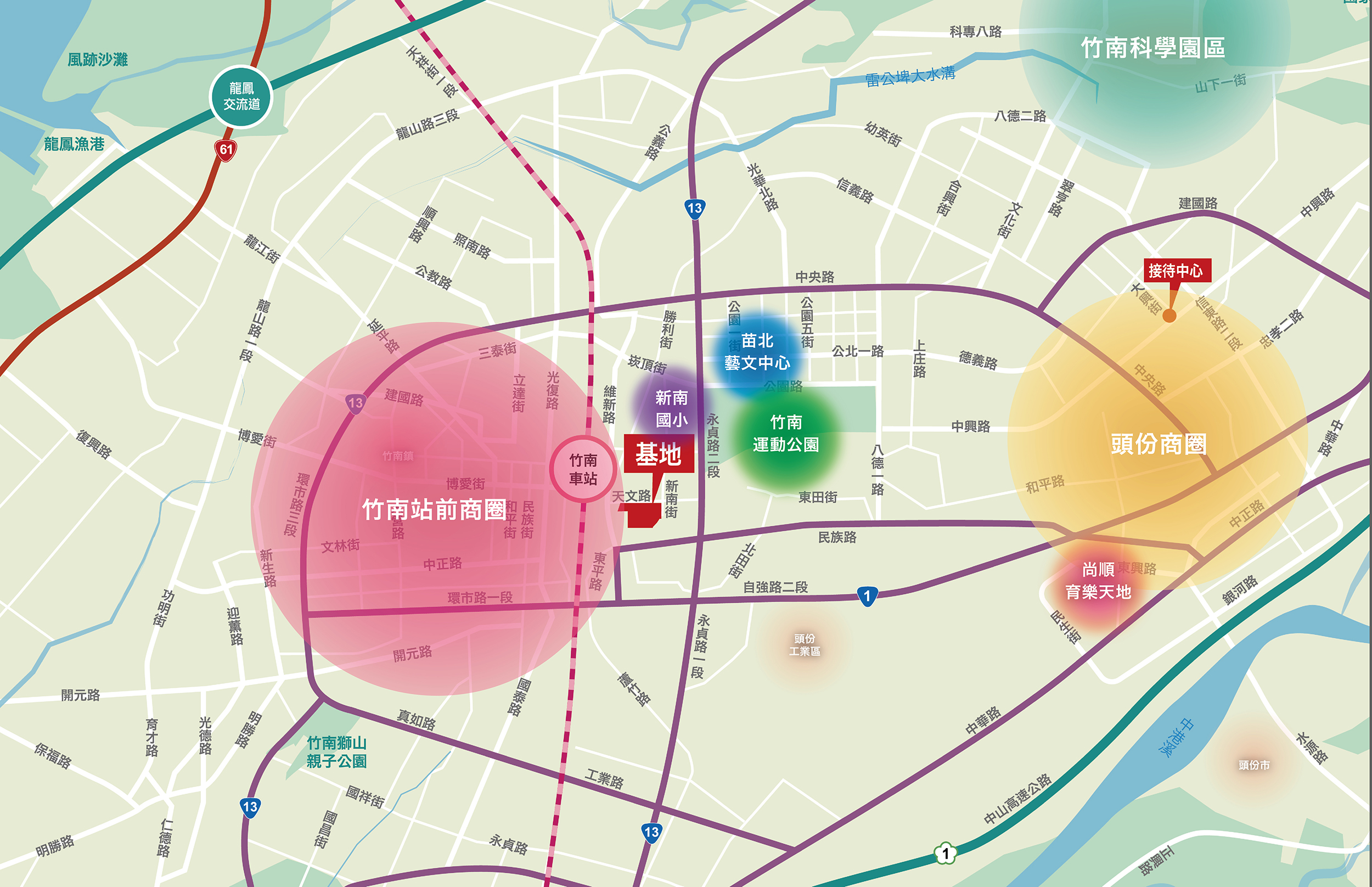 站前商圈、新南國小、竹南運動公園、