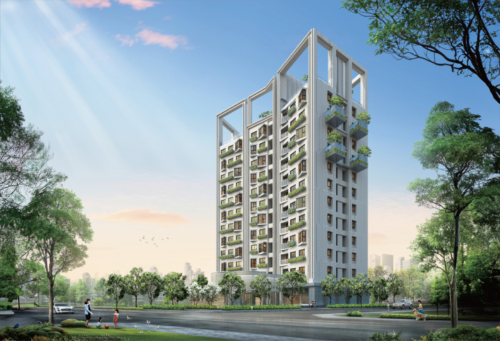 折窗角隅轉(zhuǎn)向堆疊,創(chuàng)造獨(dú)特建築表情