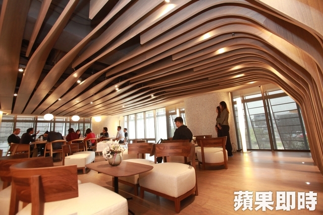 大廳的天花板也是「3D」的,在結構體上做防水,並以碳化木塑形,才貼上馬賽克石磚,確保日後不變形腐壞。社區(qū)的影音廳也採圓形曲牆設計,2樓閱覽室、輕食區(qū)、頂樓健身房也很「厚工」,直的天花板更硬生旋轉90度,變成平的,營造出樹洞的空間體驗,連燈具、燈管都是曲型,「自然」得相當徹底。