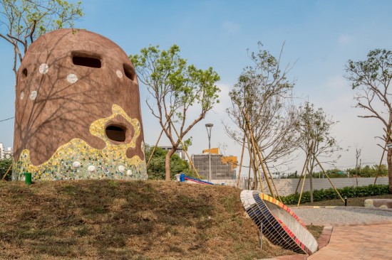 有沙坑、滑梯的遊樂場。