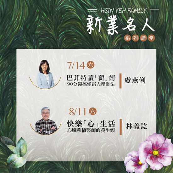 新業(yè)家族 7、8月系列活動(dòng)─「新業(yè)名人講堂」