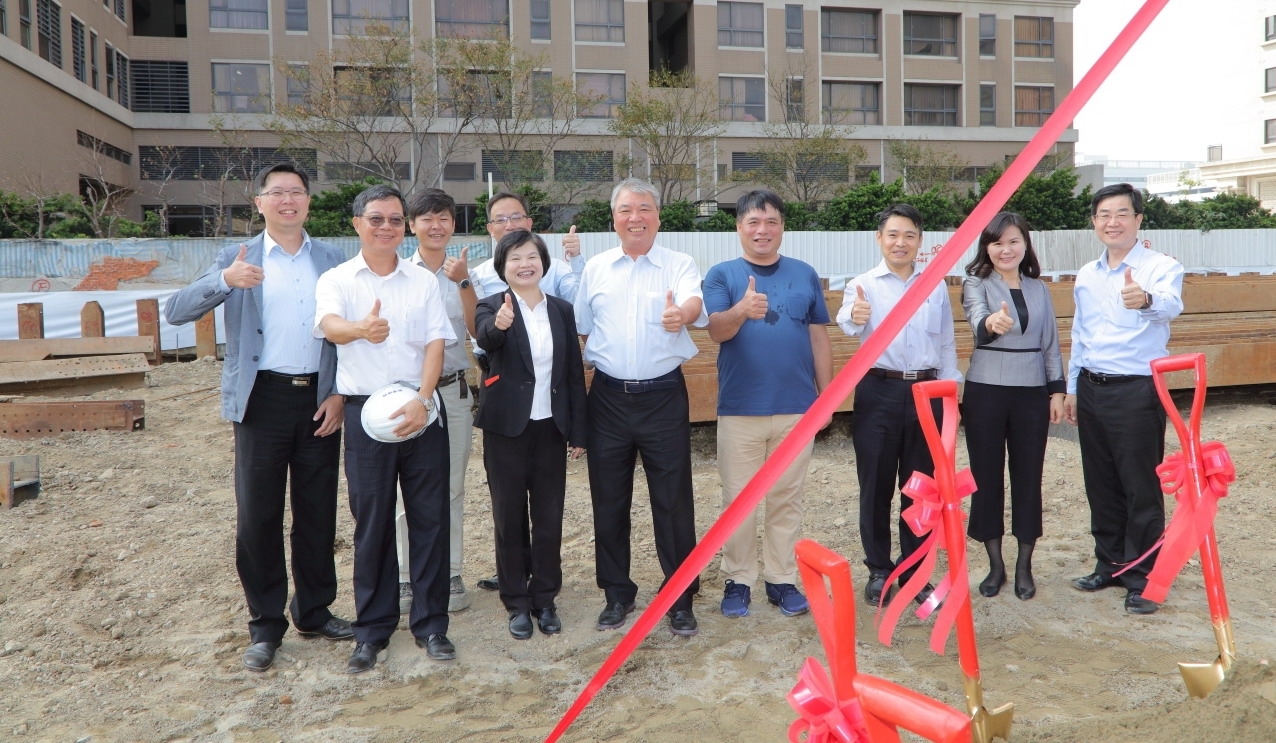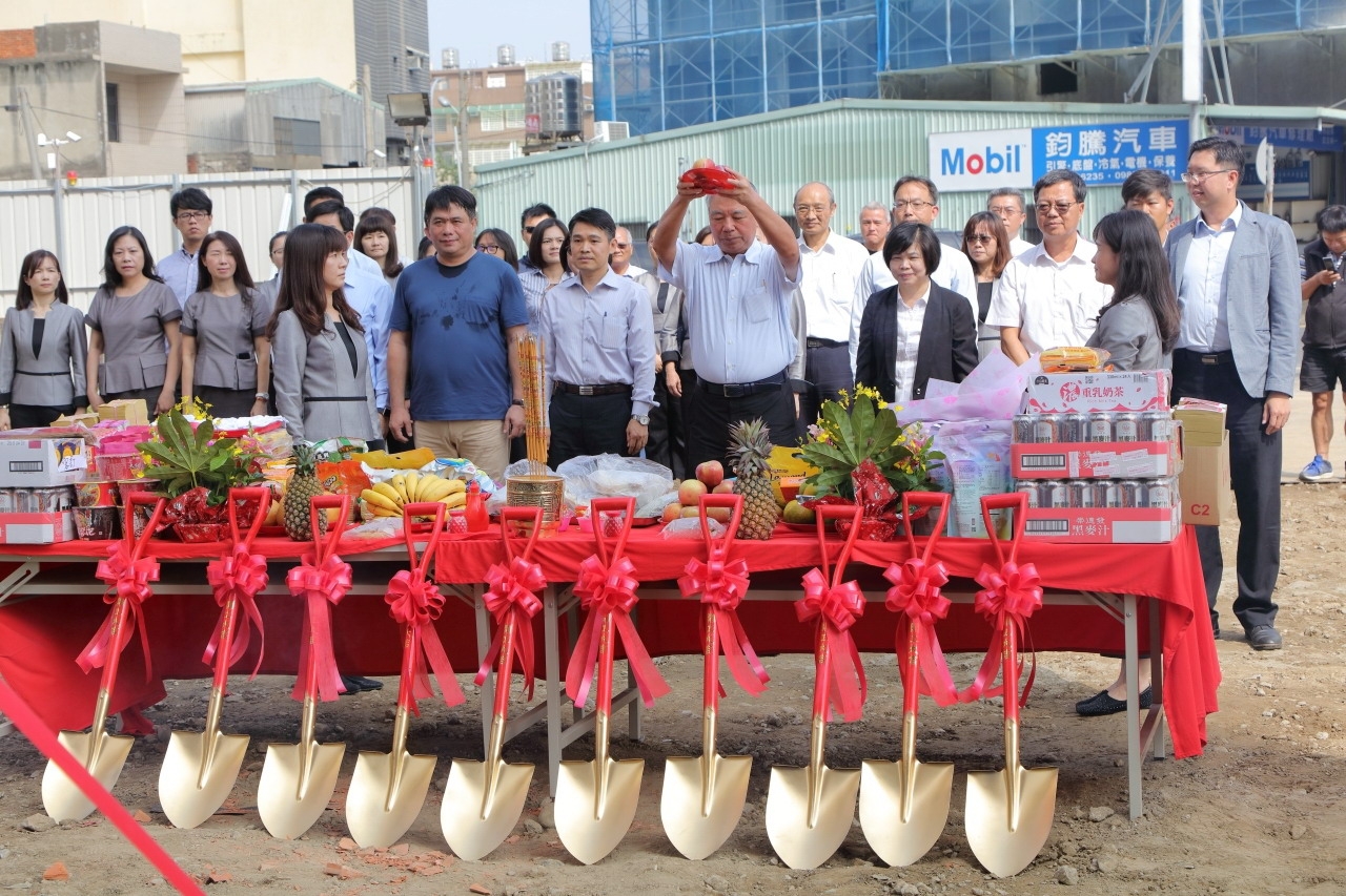 由新業(yè)大家長(zhǎng) 穆椿松榮譽(yù)董事長(zhǎng)(左一)領(lǐng)導(dǎo)鋤土、堆土,代表動(dòng)土工程正式開(kāi)始,也象徵往後工程一切平安順利。