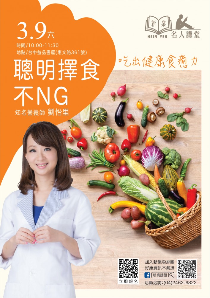 3/9(六)《劉怡里 聰明擇食講座》熱烈報(bào)名中