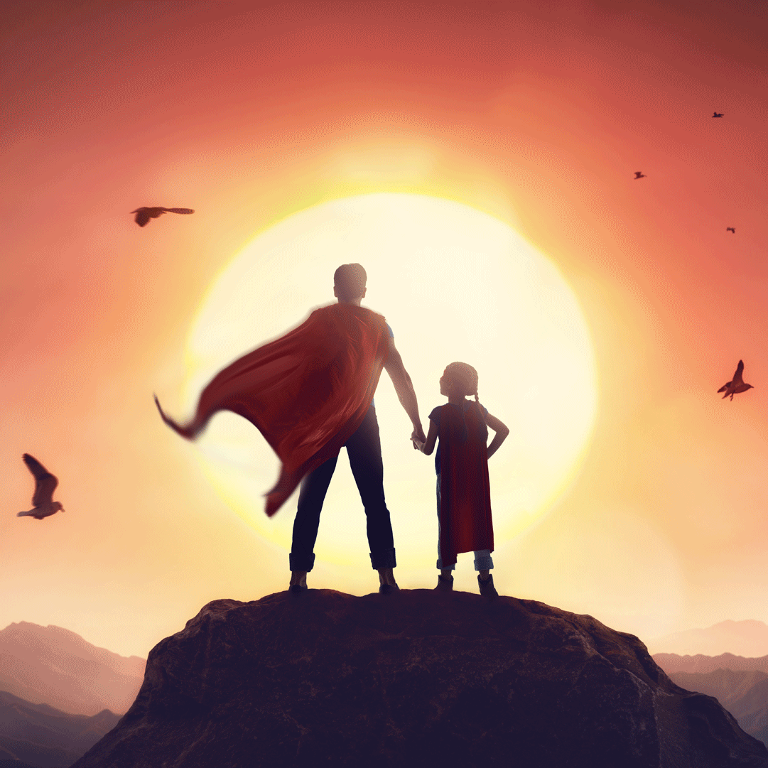 看著那如漫威英雄般寬闊的膀臂與有力的胳膊, 讓我即使踏上顛峰,也能穩(wěn)穩(wěn)站立。 緊緊包覆著我手心,那掌心的溫度, 讓我不至於在人生中迷了路; 學(xué)爸爸披上披風(fēng),一切都天不怕地不怕, 這份勇闖人生、鋼鐵般的勇氣, 是這位英雄爸爸給的, 或許像硬漢般不懂得與孩子暖心對(duì)話, 但他給予並守護(hù)的一切總是緊扣著愛(ài)。