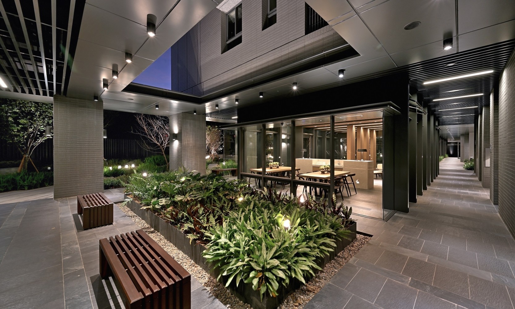除了白天的明亮與綠意疊翠,臨近傍晚時(shí),中庭植栽之間打著光芒,也帶來(lái)另一番曖昧的風(fēng)味。-【新業(yè)宜家】。