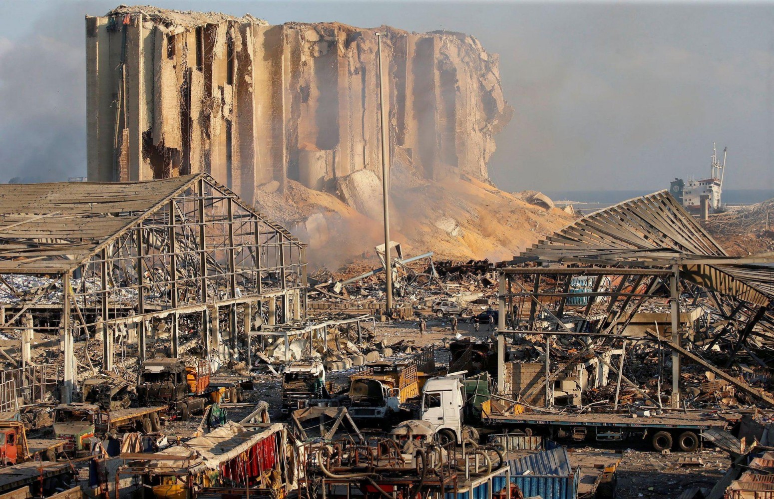 被震得搖搖欲墜的大型機(jī)具及斷垣殘壁,當(dāng)?shù)鼐用駷槎惚芪kU(xiǎn)而紛紛逃往高處,注視著港口倉(cāng)庫(kù)的方向,心中該是如何無(wú)奈?(圖片擷取自路透社,如有侵權(quán)請(qǐng)告知?jiǎng)h除,謝謝?。?>