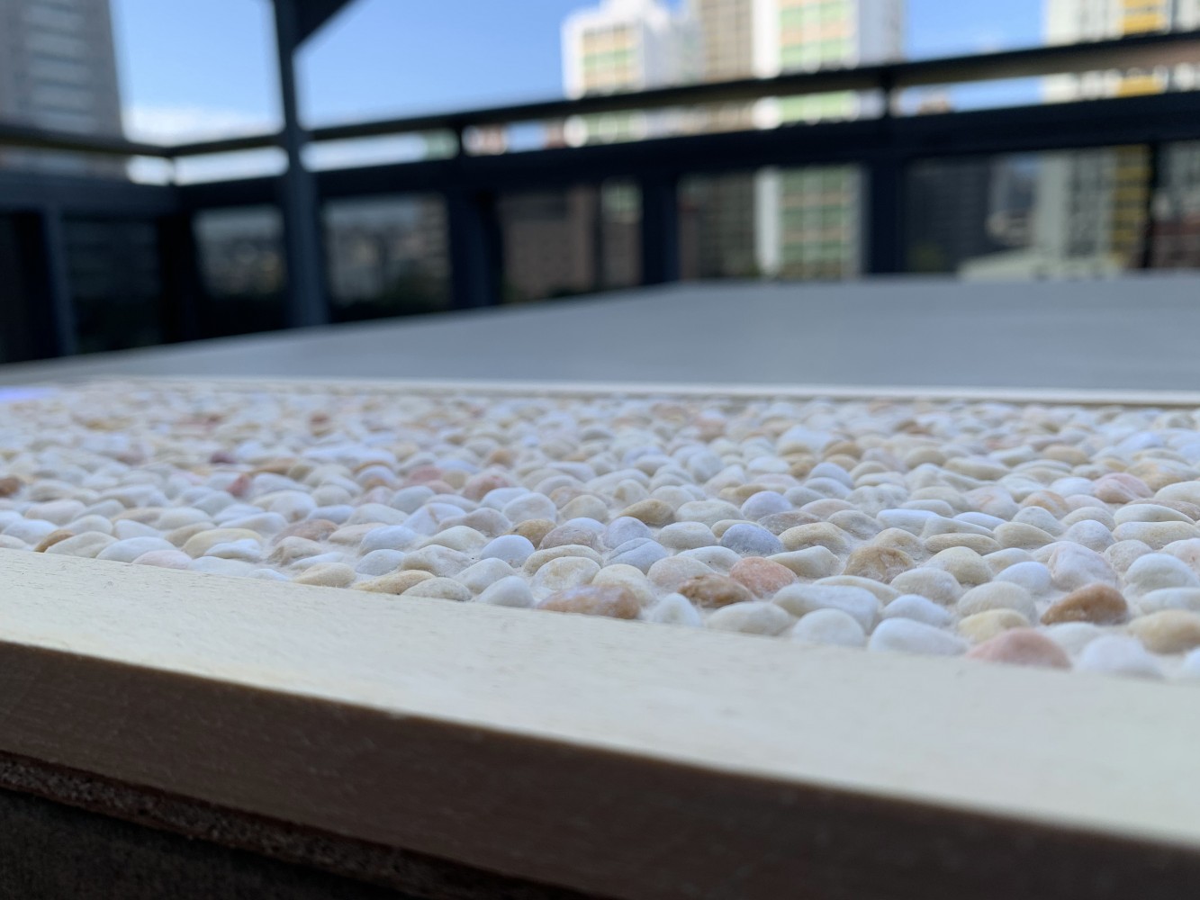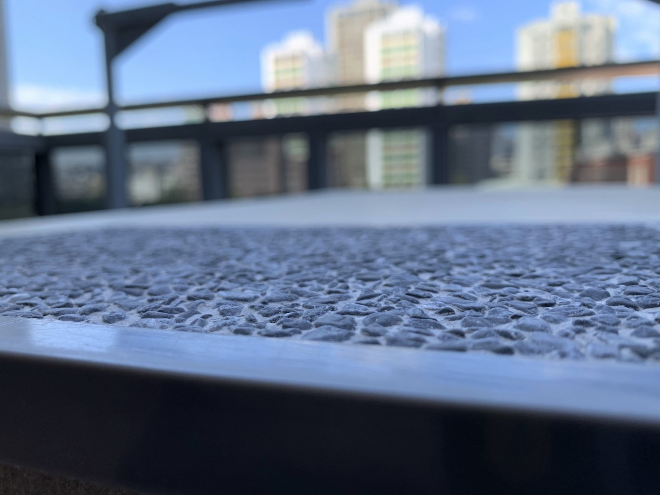 推刀所及,邊角務求平整細緻, 一抹勾勒看似大而化之, 內含師傅多年的功力與眼力, 隨著不同大小的石子,顯現多變層次的樣貌, 溫和的觸感摸得著,職人細工的心境看得見。