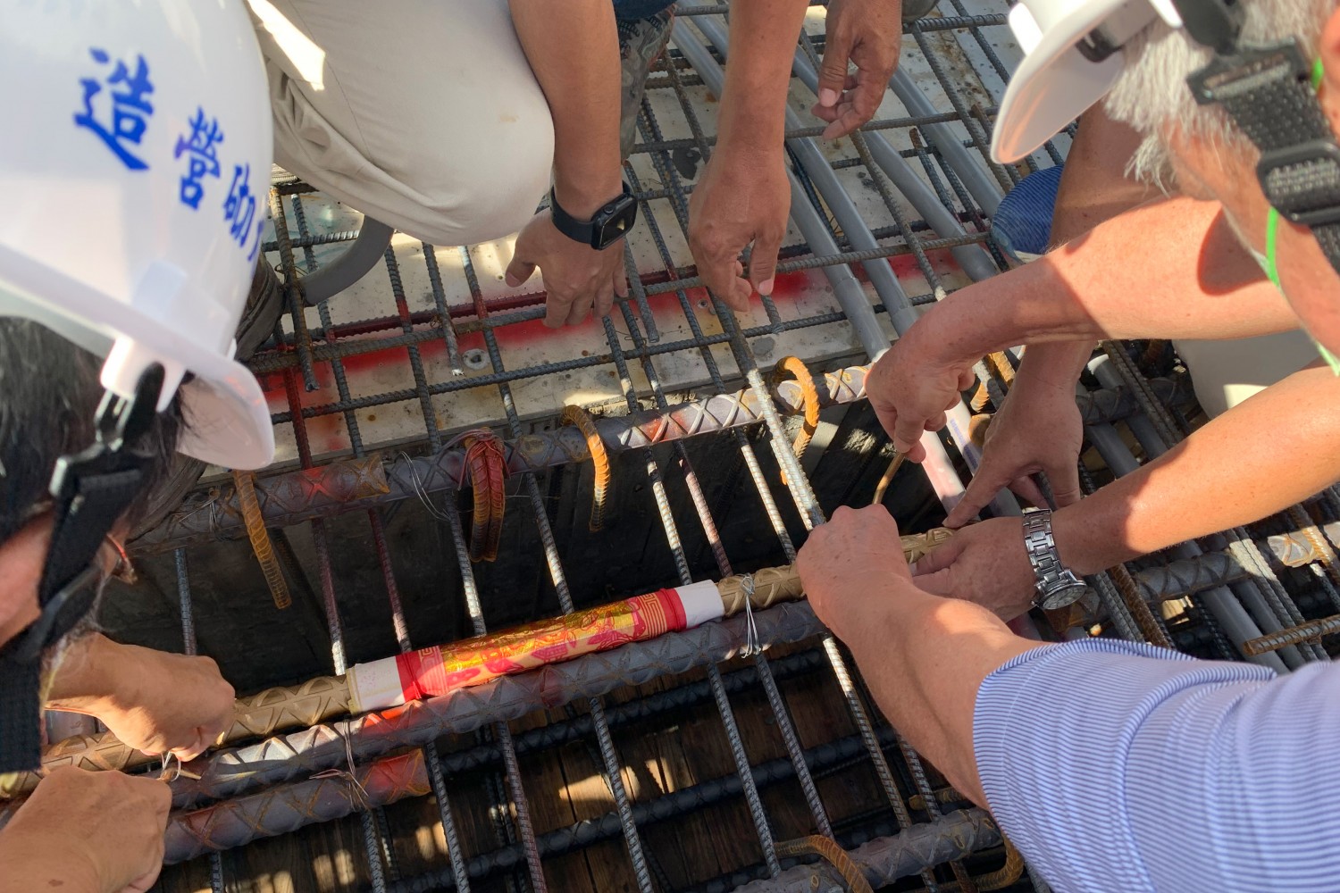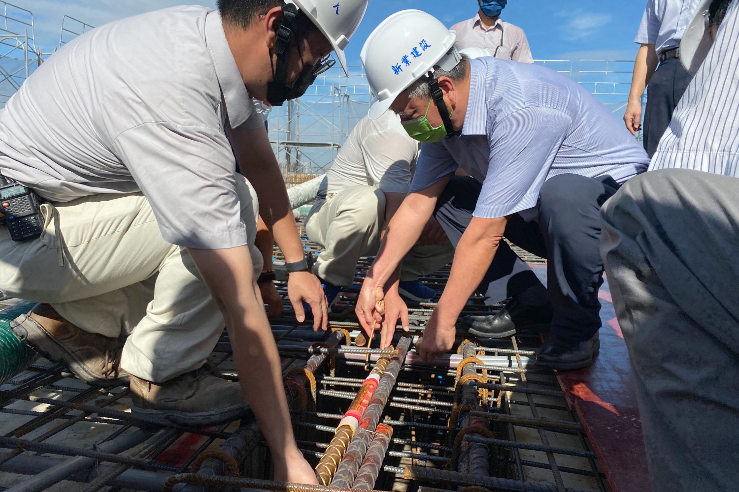 深掘根基綁鋼筋,手捧金樑上樓頂,