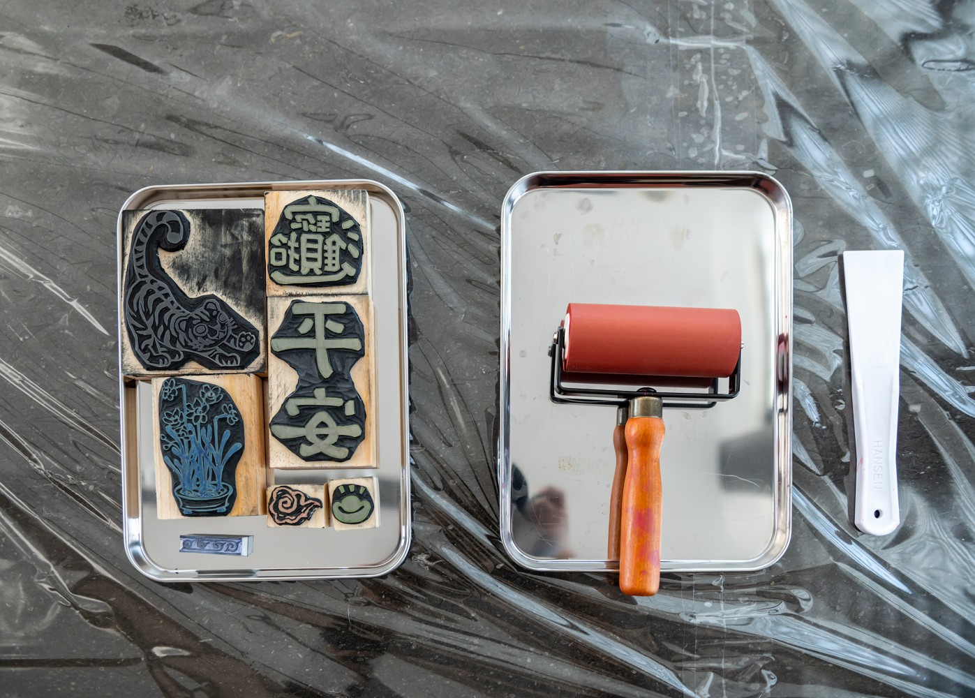 年節(jié)圖樣,恣意拼貼,動動滾筒均勻壓印,