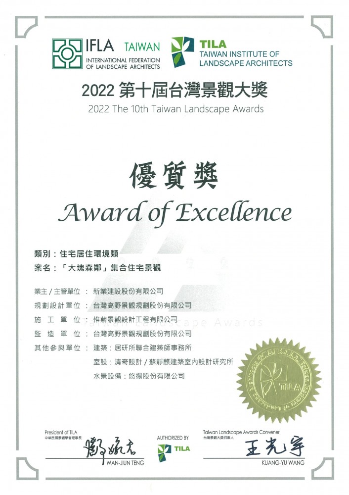 新業(yè)新里程|大塊森鄰_榮獲2022年第十屆臺(tái)灣景觀大獎(jiǎng)
